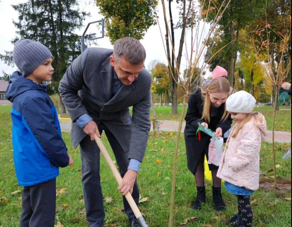 19 октября аллею семейных деревьев высадили почетные семьи города Скиделя в рамках Недели родительской любви.