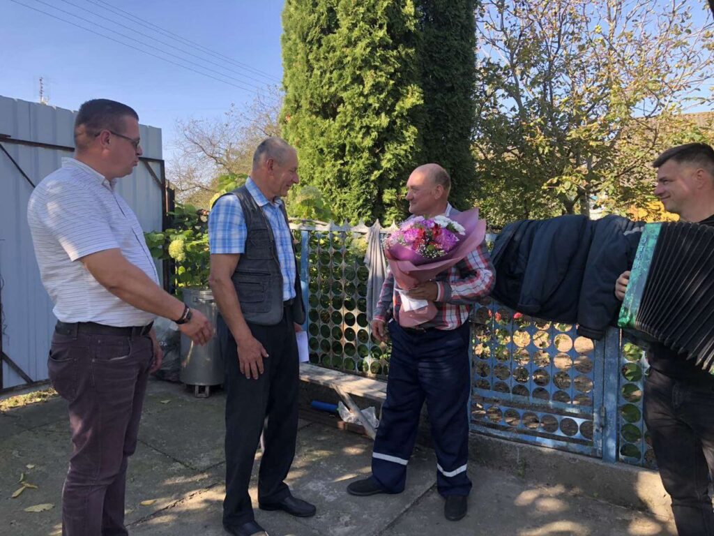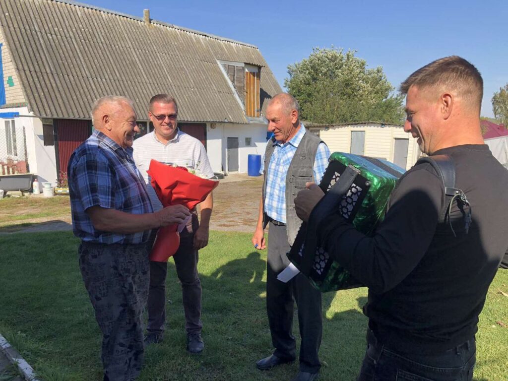 В преддверии Дня пожилых людей работники Коптевского центра культуры совместно с председателем ветеранской организации КПСУП « Гродненская птицефабрика» Феликсом Юровским и заместителем директора по идеологической работе Иваном Хурсом поздравили жителей д. Славичи Толкача Эдварда Эдвардовича и д. Каменка Абложевича Вацлава Антоновича с юбилеем.
